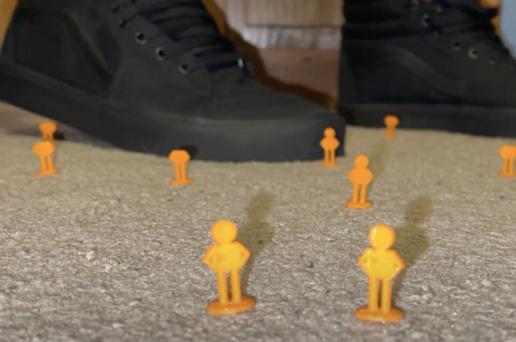 Watch as the tiny army gets destroyed by massive soles!